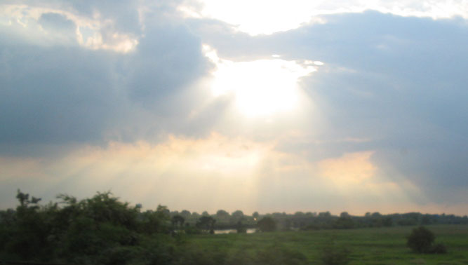 Sonnenstrahlen die durch die Wolkendecke brechen