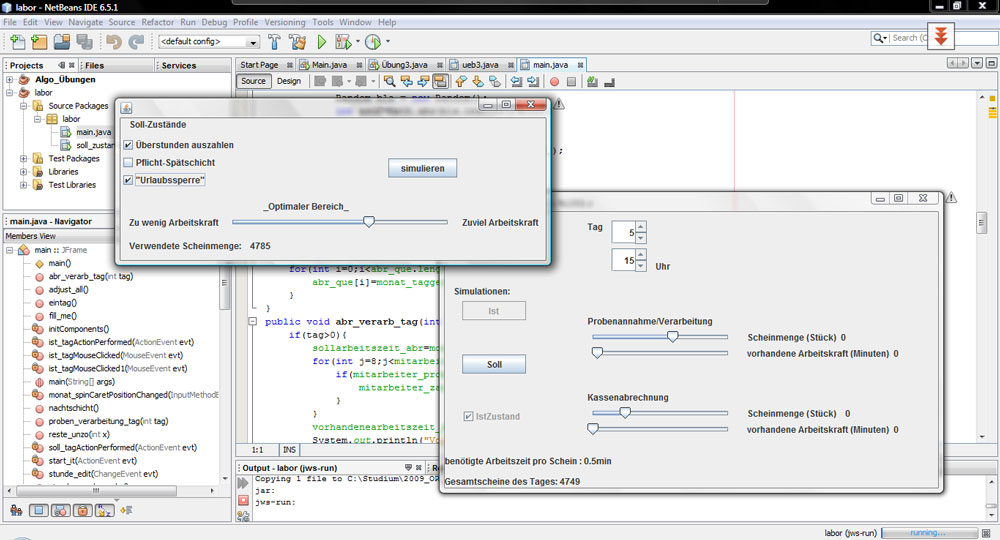 In java programmierte Anwendung im Rahmen der Veranstaltung OR-Simulationen.